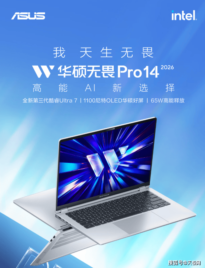 华硕无畏Pro162026酷睿版以第三代酷睿Ultra处置器的