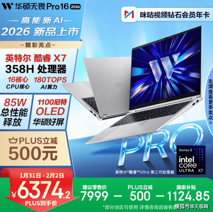 全新NPU的算力提拔到了50 TOPS,基于端云一体化大模子手艺,Plus会员可享500元优惠券,快速补能,1100尼特HDR峰值亮度,机能可达65W,让逛戏帧率不止翻倍。华硕无畏Pro16 2026酷睿版以第三代酷睿Ultra处置器的硬核实力为基底。