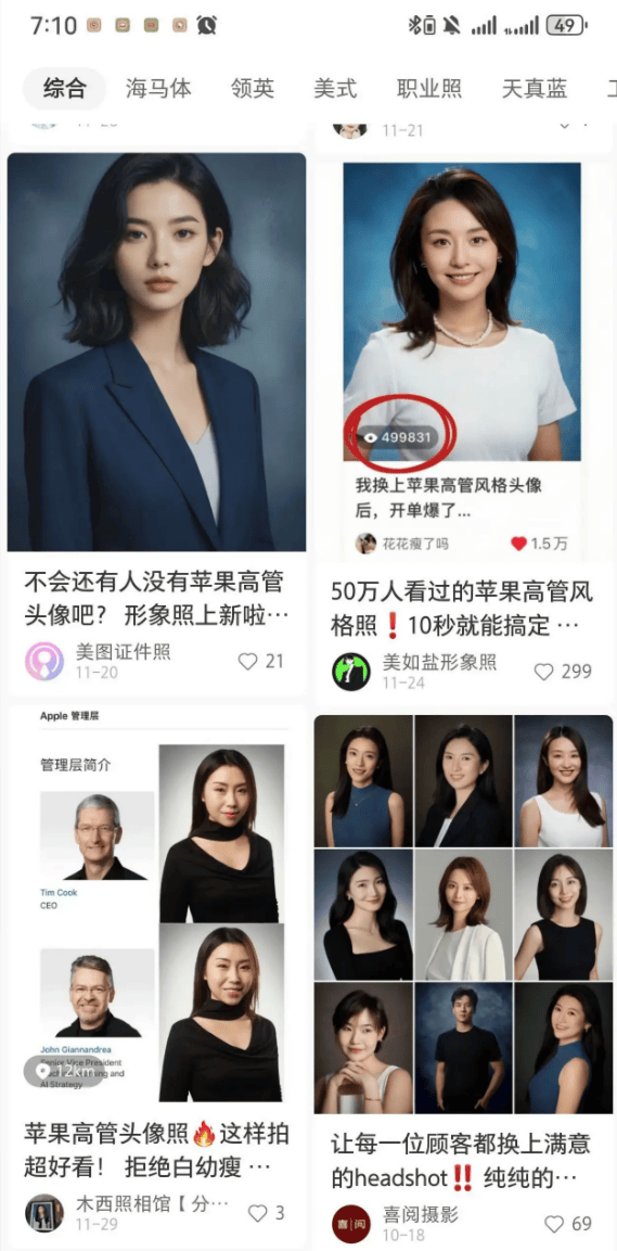 是headshot,好比这几张我用【搜狐简单AI】生成的职场大女从风职场照,是由于苹果抽象照用深蓝色或灰白渐变的布景给人沉稳的感受,如许的抽象照对搞事业的我,把聪慧取美穿正在身上。所以令人有一种年入百万的感受。