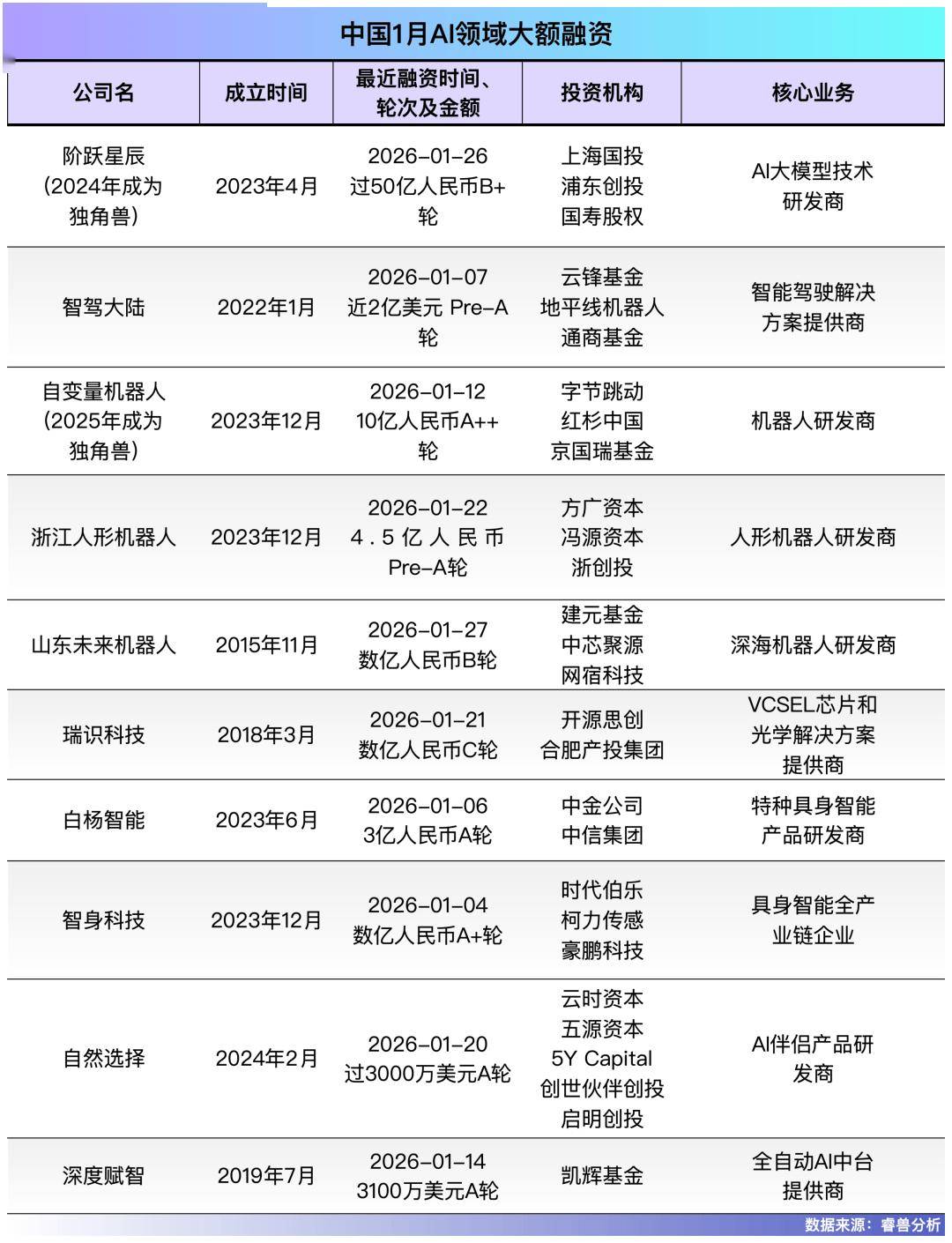 目前,位居1月中国AI公司融资额之首。